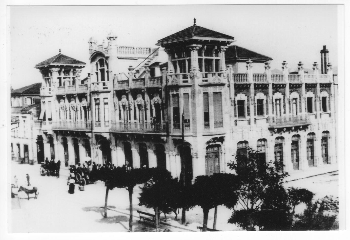 Descripción: Vista de Colunga hacia 1912 aproximadamente. El edificio que hace esquina era la tienda de Los Pablos, comercio de ultramarinos que ocupaba el solar entero. Hoy quedaría enfrente de la casa del doctor Francisco Grande Covián. (Foto nº 10500)